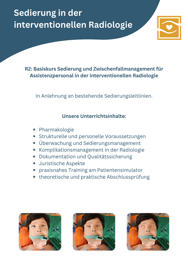 Neu im Programm haben wir Sedierungskurse speziell für die interventionelle Radiologie. Sie finden diese Kurse bei unseren Kursterminen unter der Rubrik "Radiologie" oder "Pflege" auf unserer Webseite. Diese Kurse haben wir auch bereits als Inhouse-Kurse in den Kliniken vor Ort abgehalten. Sollten auch Sie Interesse hieran haben, schreiben Sie uns gerne an.